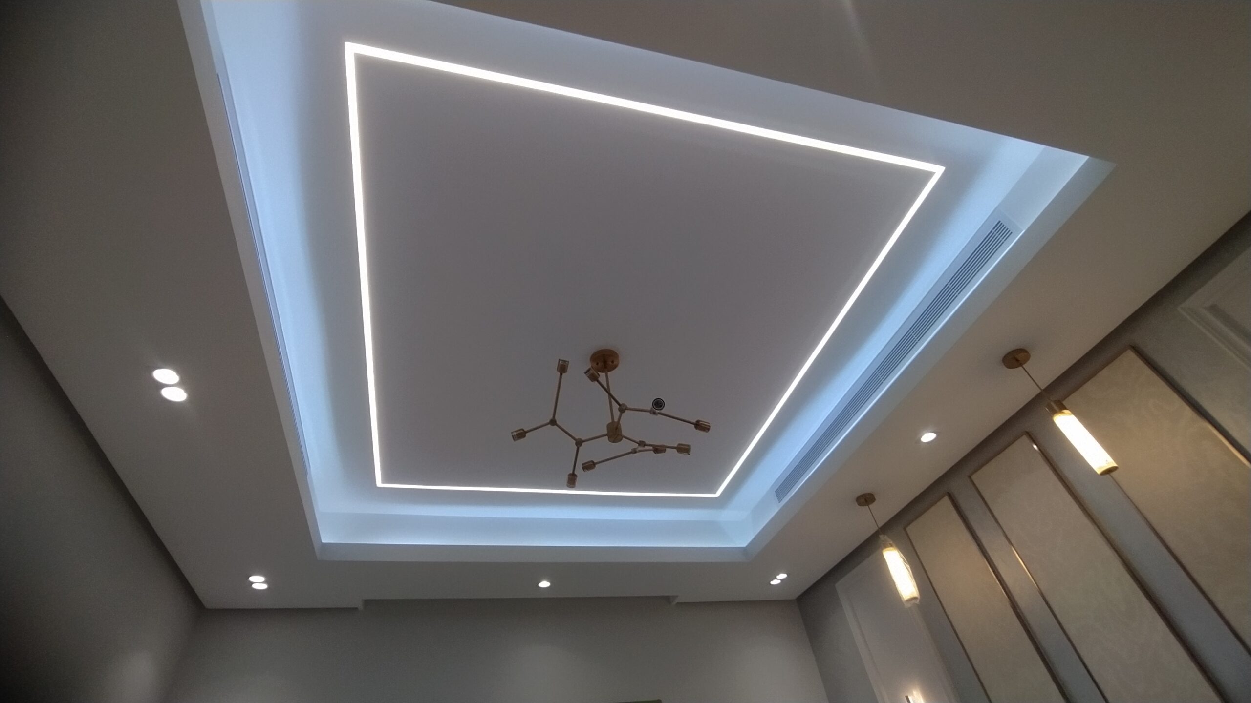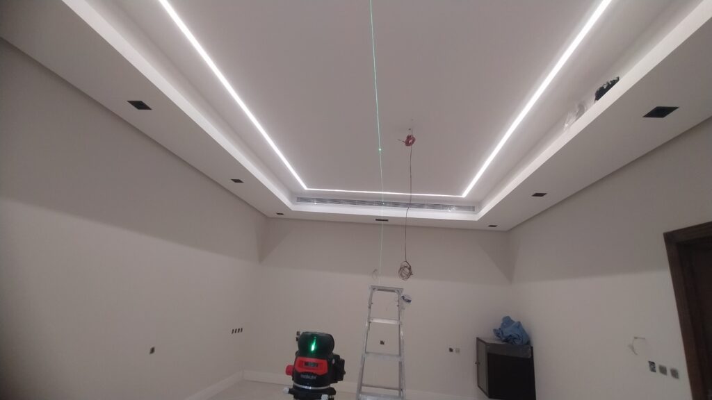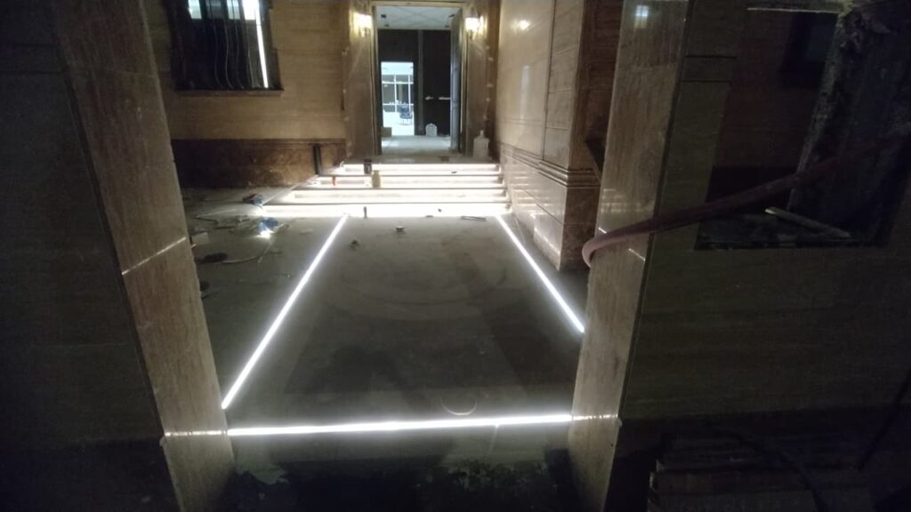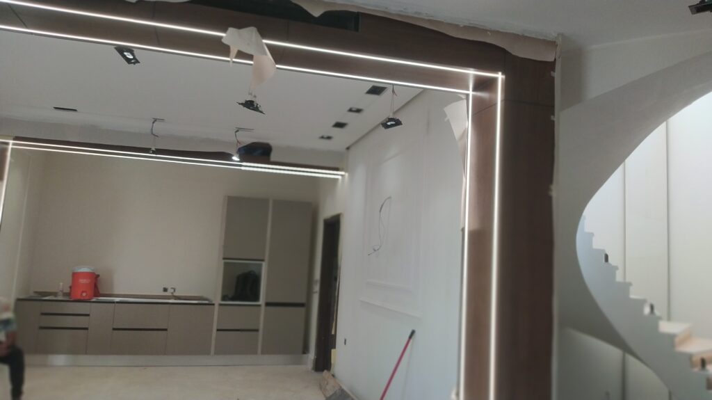 تركيب إنارة LED، سبوت لايت، إنارة ديكورية وكشافات خارجية مع توزيع احترافي يبرز جمال المكان ويوفّر استهلاك الطاقة.